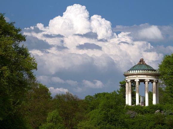 Der Monopteros ist ein tempelartiger Rundbau, der 1836 erbaut wurde und sich elegant in die südliche Parklandschaft integriert. Wer ihn erklimmt, kann einen traumhaften Panoramablick über die Münchner Skyline genießen. Perfekt zum Runterkommen, Entspannen und Relaxen!